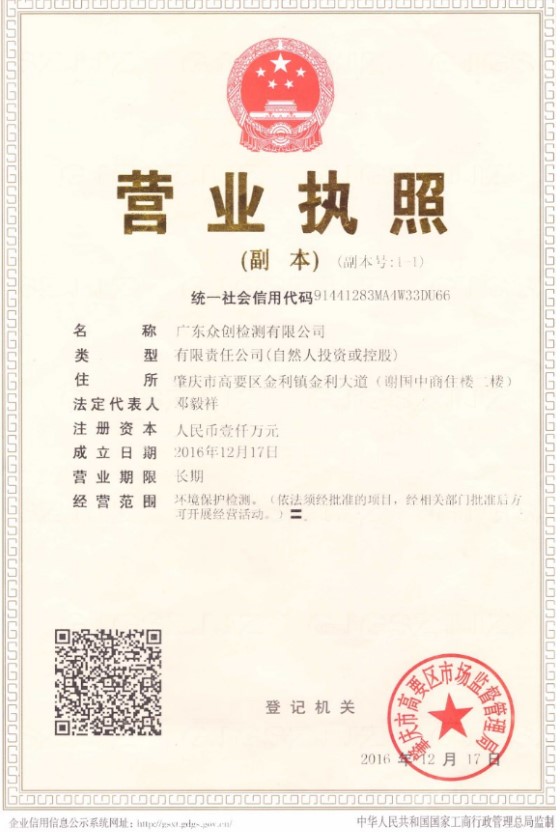 版权所有 Copyright(C)2017 广东众创检测有限公司